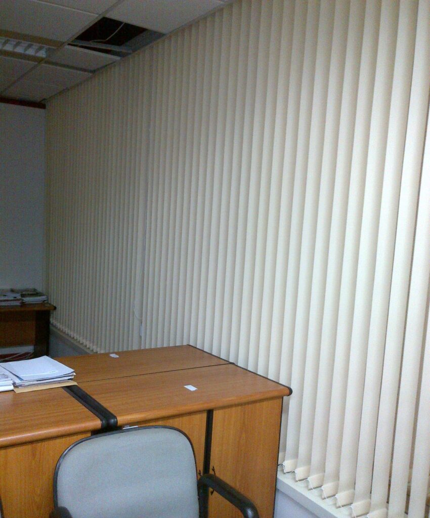Vertical blinds Surabaya untuk kantor dan gedung profesional dengan tampilan modern, rapi, dan berkelas.